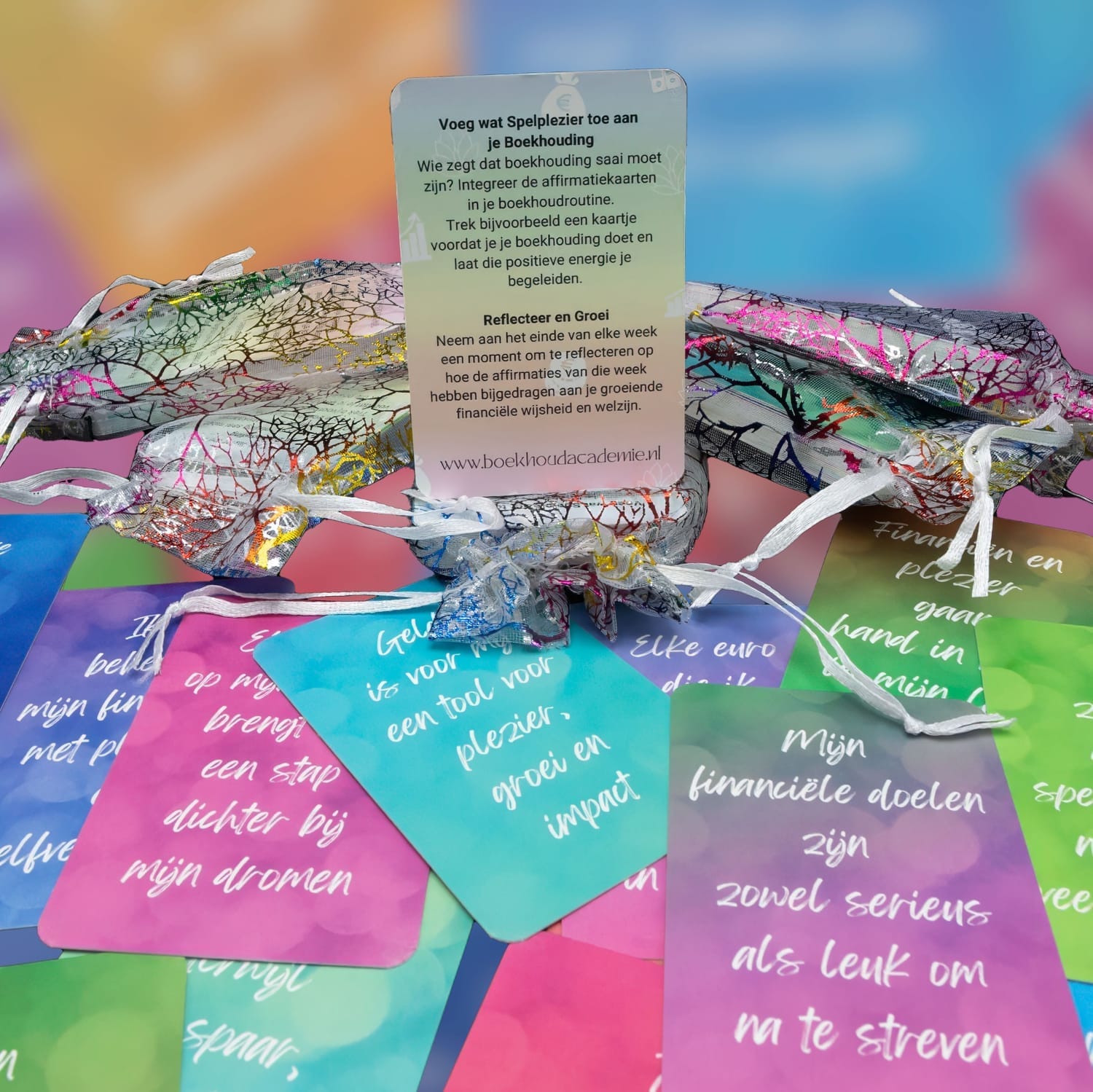 Bij D-Ly BoekhoudAcademie omarmen we de visie dat financiën niet alleen een serieuze zaak zijn; ze kunnen ook kleurrijk, speels en buitengewoon plezierig zijn. Het is tijd om een sprankelende nieuwe benadering van financiën te ontdekken met onze unieke Financiële Fun Affirmatiekaartjes!